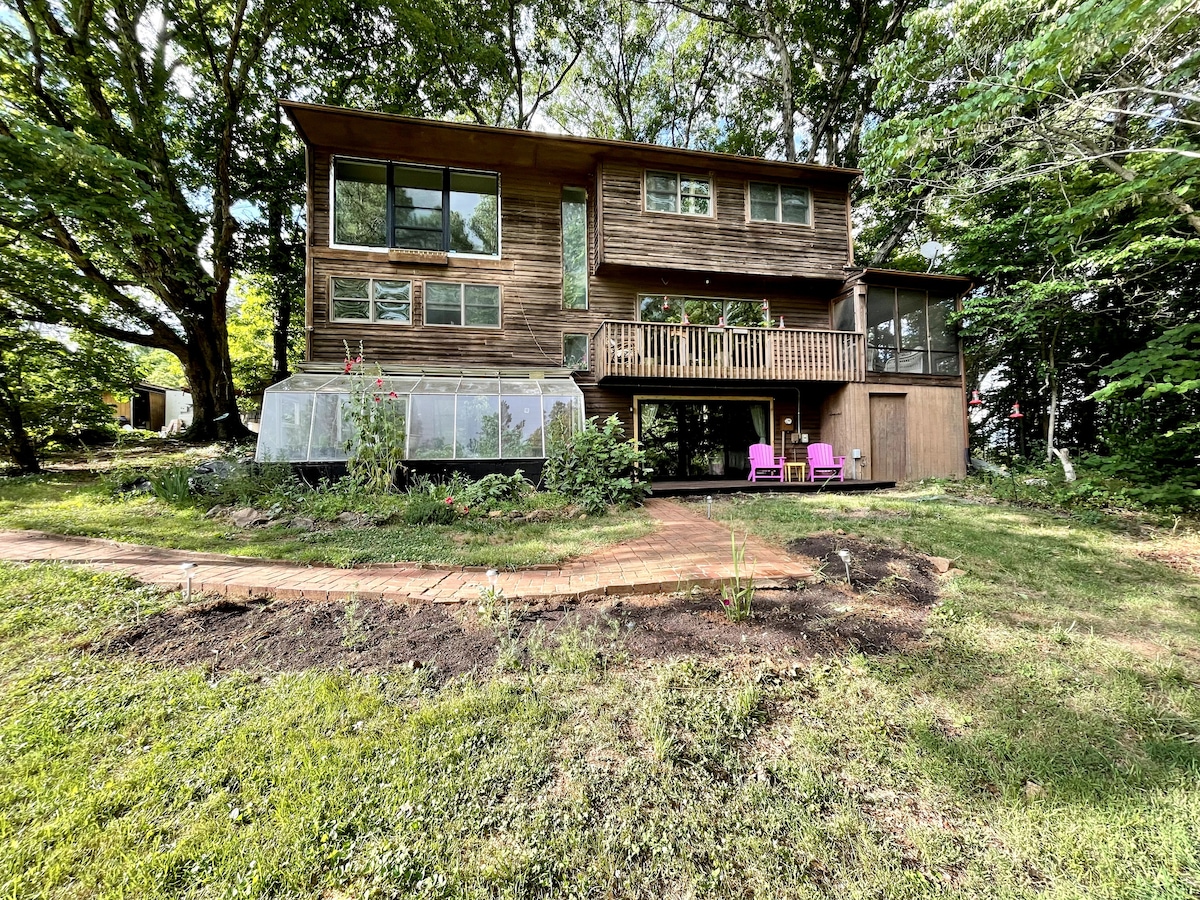 We welcome you to our new modern house (2020) located on 52 private wooded acres, adjacent to our winery and the Blue Ridge. Designed and built by award winning Architect and wine maker, Barry Moss, it is gorgeous inside and out. Decks overlook the river, forest and mountain farms. A path leads down to the river beach. Walk up to the top of the mountain and experience the best wines and views of any winery in Virginia. Modern interiors with wood floors, granite counters, and tiled bathroom.