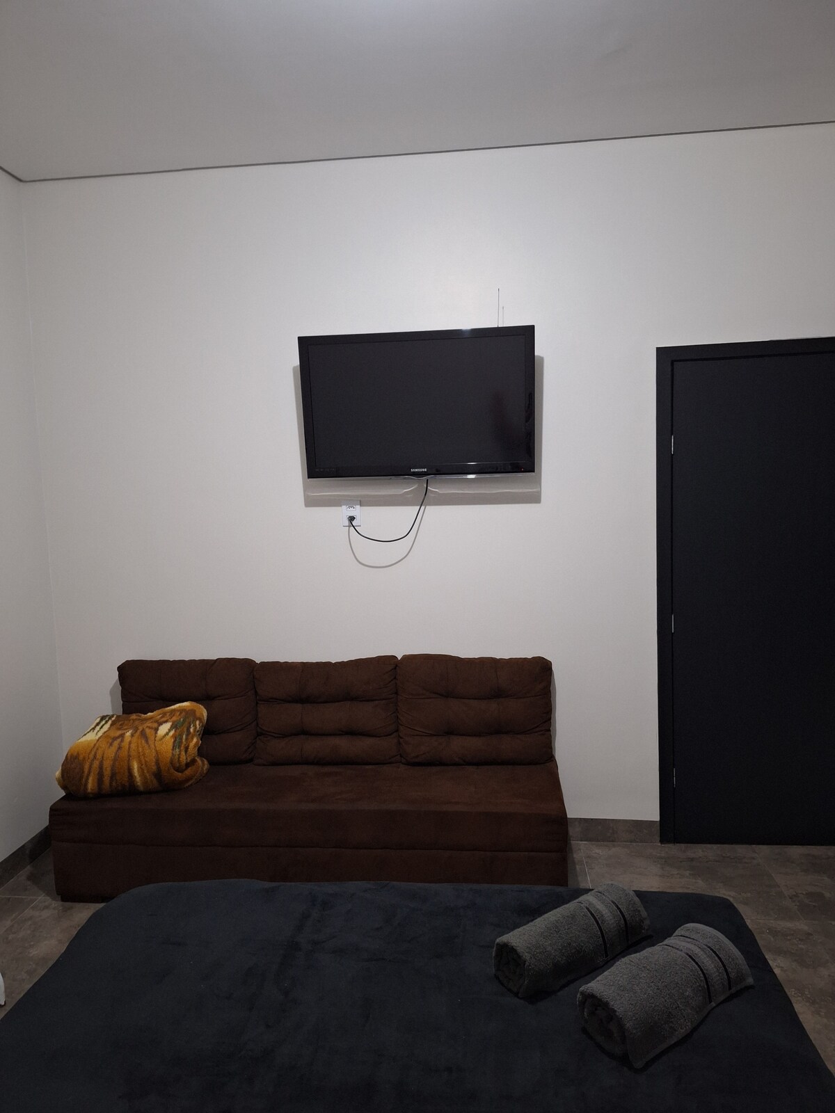 Desfrute de um ambiente aconchegante: Quarto com ar condicionado, tv com canais abertos, Netflix, Youtube, cama de casal e um confortável sofá-cama para você usar como sofá ou como cama. Cozinha e Lavanderia completa(ver itens em "comodidades"). Banheiro= Se destaca pela beleza e qualidade com um bom chuveiro para seu Banho. Garagem para 1 carro com portão eletrônico. Estaremos à sua disposiçao para atender você e sua família. Venha com a gente.