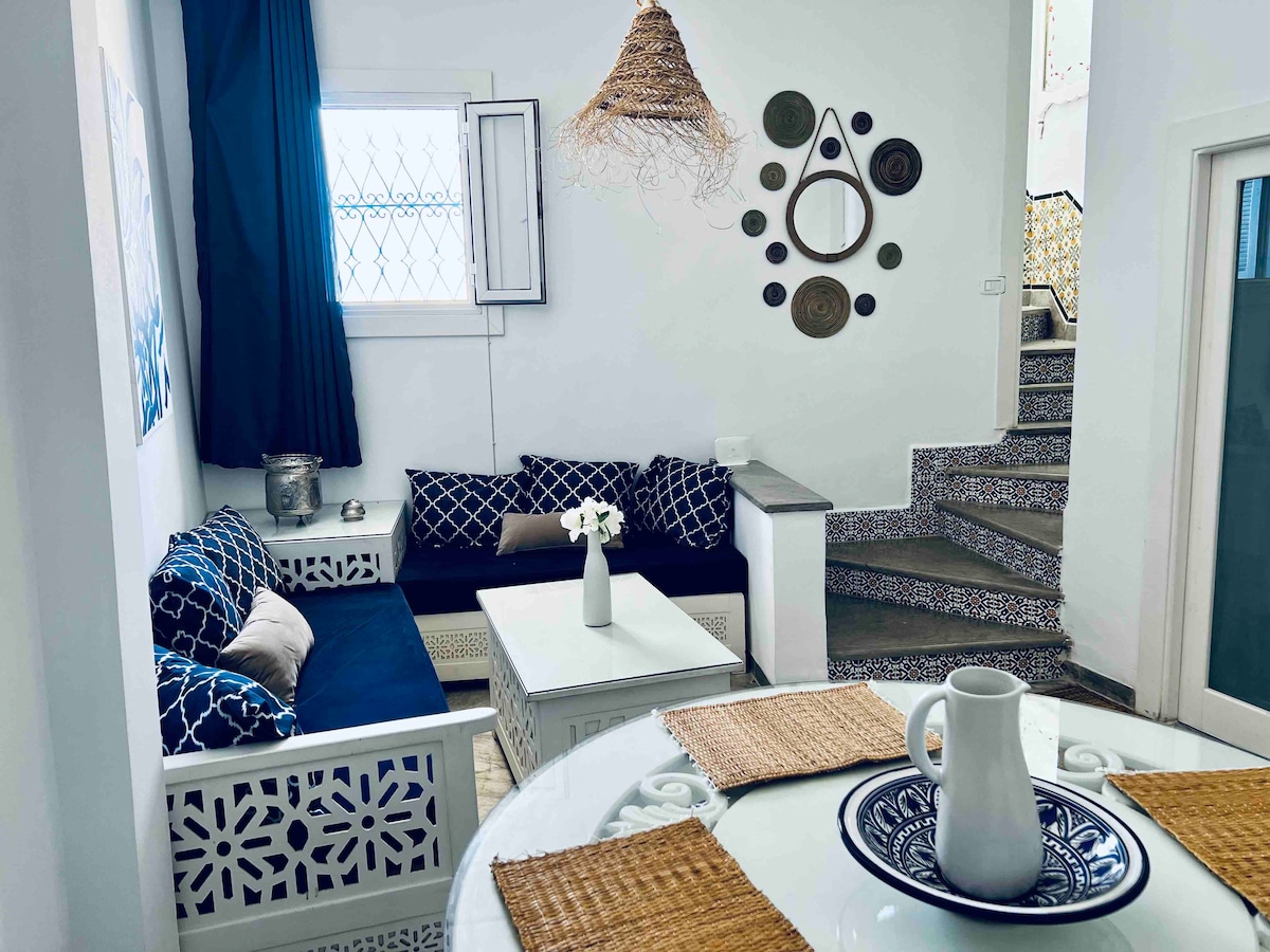 Looking for a seaside getaway? Discover this charming House in La Marsa, ideally located near the town center with direct access to the beach. Fully air-conditioned for your comfort, it includes a spacious bedroom, a cosy living room, a kitchenette, a microwave, a TV, a bathroom with shower and toilet, a Nespresso machine, a kettle and a fridge. Rental of 2 paddles, 1 3-seater canoe and reservation of a sea-view BBQ area, for unforgettable moments.