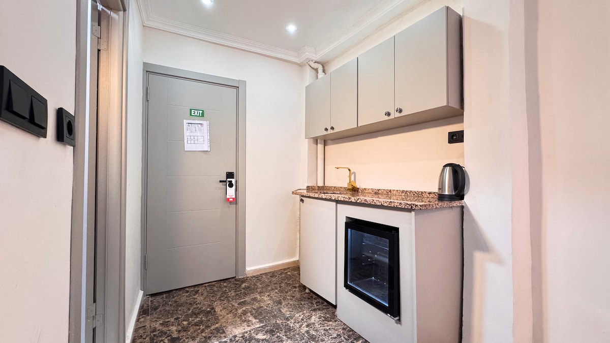 This charming hotel apartment offers a unique blend of simplicity and elegance with its modern, refined design. Perfect for two people or a couple, it includes a comfortable double bed, a well-equipped kitchenette, a private bathroom, and a 40-inch smart TV. Large windows . Ideally located just steps from Ortaköy Coast, Bosphorus Bridge, famous kumpir and waffle shops, and the historic heart of Ortaköy in central Istanbul.