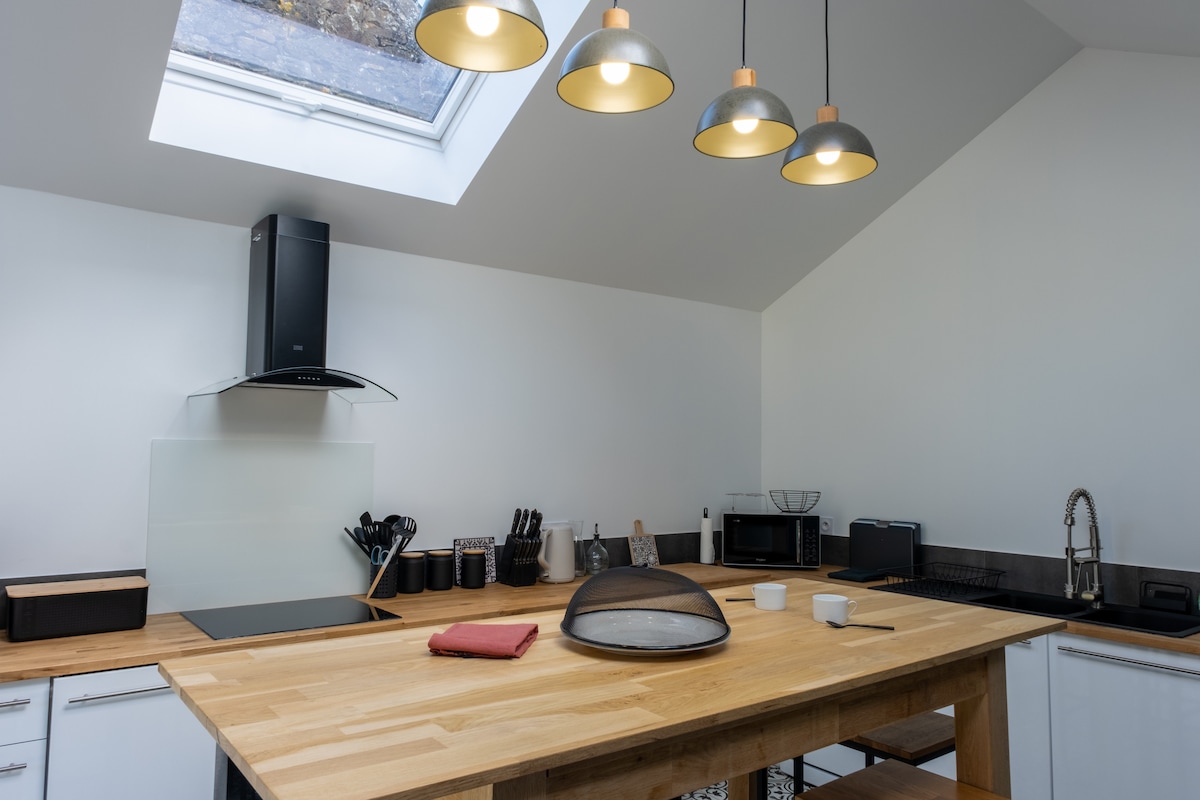 Looking for calm, nature and comfort? Welcome to our accommodation nestled in the heart of the countryside, ideal for a relaxing getaway. Enjoy a peaceful environment, perfect for disconnecting. 🌿 The advantages of the accommodation: • Absolute calm, green setting • Modern and functional kitchen • Spacious walk-in shower • Ideal for couples, families or teleworking Come and recharge your batteries in a place that combines nature, comfort and simplicity.