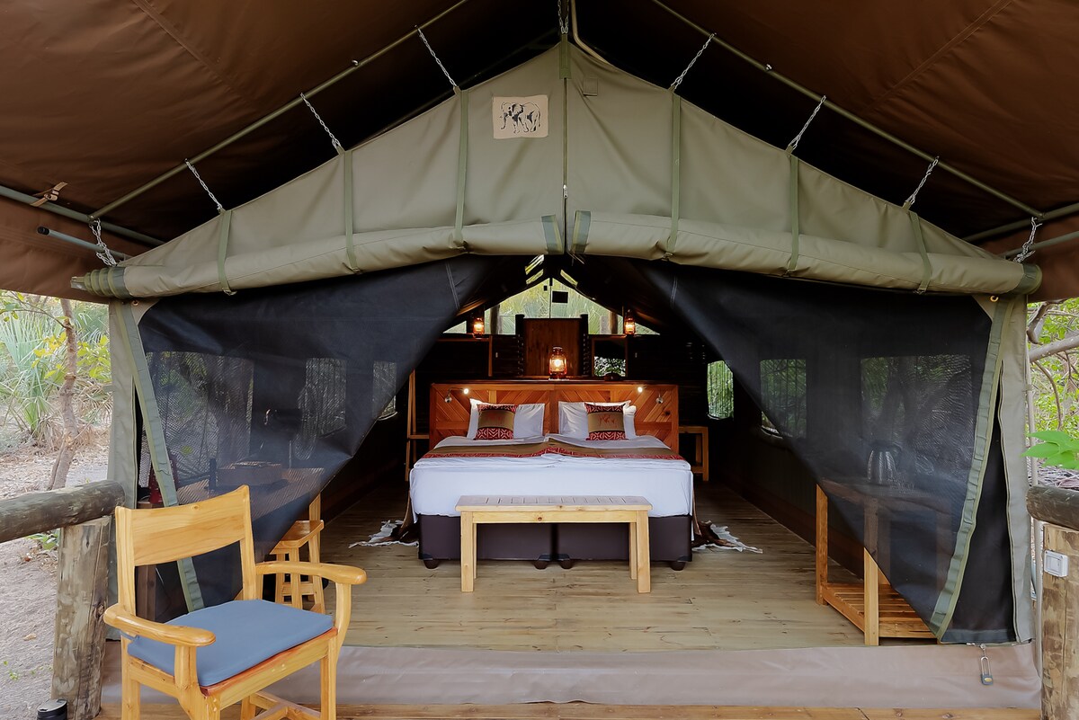 Self-catering Twin bed Safari Tent with bush view