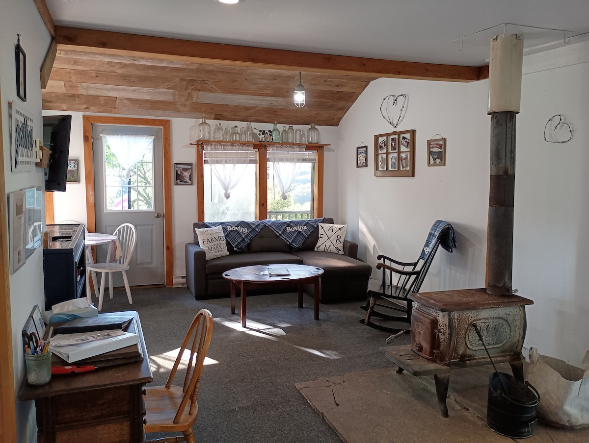 Keep it simple at this peaceful and centrally-located place. Nestled in the hills of Bovina, NY is this cozy cabin. Whether your looking for that romantic getaway, R&R, or adventures in the Catskills this is the peaceful place to stay. Located minutes from Bovina Ctr., Andes and Delhi. Travel down to County Hwy 18 where you will find farm stands offering fresh eggs, raw milk, breads/pies and beef. The cabin is available year around.