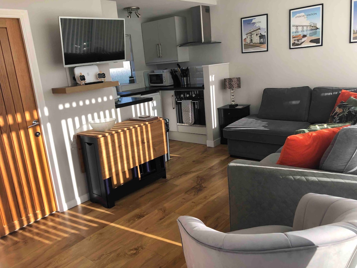 Take it easy at this unique and tranquil getaway. 2 bedrooms with one king size bed and one double bed. Bathroom with shower, fully fitted kitchen, dinning area and lounge. Sofa in lounge is a pull out double bed. Private garden with sun deck. Off-street parking. Within a short walk to the sea and the local village. Surrounded by beautiful coastal and country walks. Small convenience store at end of the road, but only a short walk from the Selsey village. Plenty to visit in the local area.