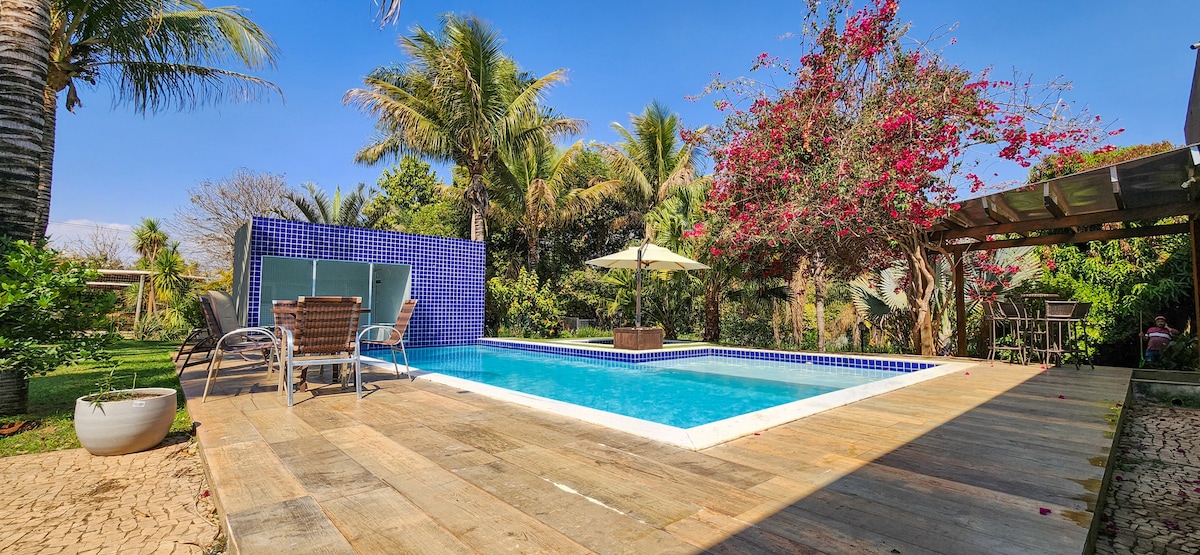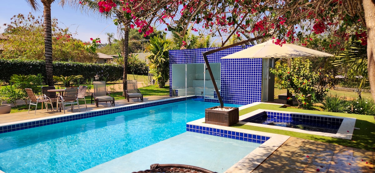 Clique em reservar e garanta sua hospedagem com tranquilidade! A Casa Mahalo é perfeita para reunir família e amigos em Brasília nas férias! Espaço completo para até 10 hóspedes. Com piscina e jacuzzi aquecidas, cascata, churrasqueira completa, ambiente privativo e espaços confortáveis com wifi de alta velocidade. Localizada em condomínio fechado no Jardim Botânico a 25 minutos do centro de Brasília, com segurança 24h e amplo comércio próximo ao condomínio. Faça sua reserva e aproveite!