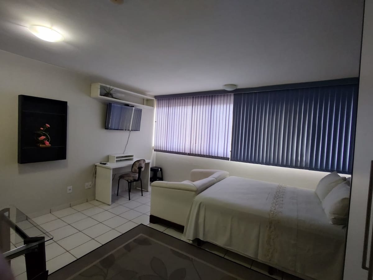 For those who do not give up comfort and elegance in the heart of Brasilia! 35 sq. meter flat, in a hotel. For a short visit or long stay, you'll have everything to feel at home. Private and quiet environment, queen-size bed, premium trousseau, and mini kitchen equipped with cooktop, microwave, minibar, coffee maker. Balcony, garage and access to the gym, swimming pool, sauna and restaurant. Perfect location: SHN, Esplanade, malls and parks. Enjoy a unique experience in Brasilia