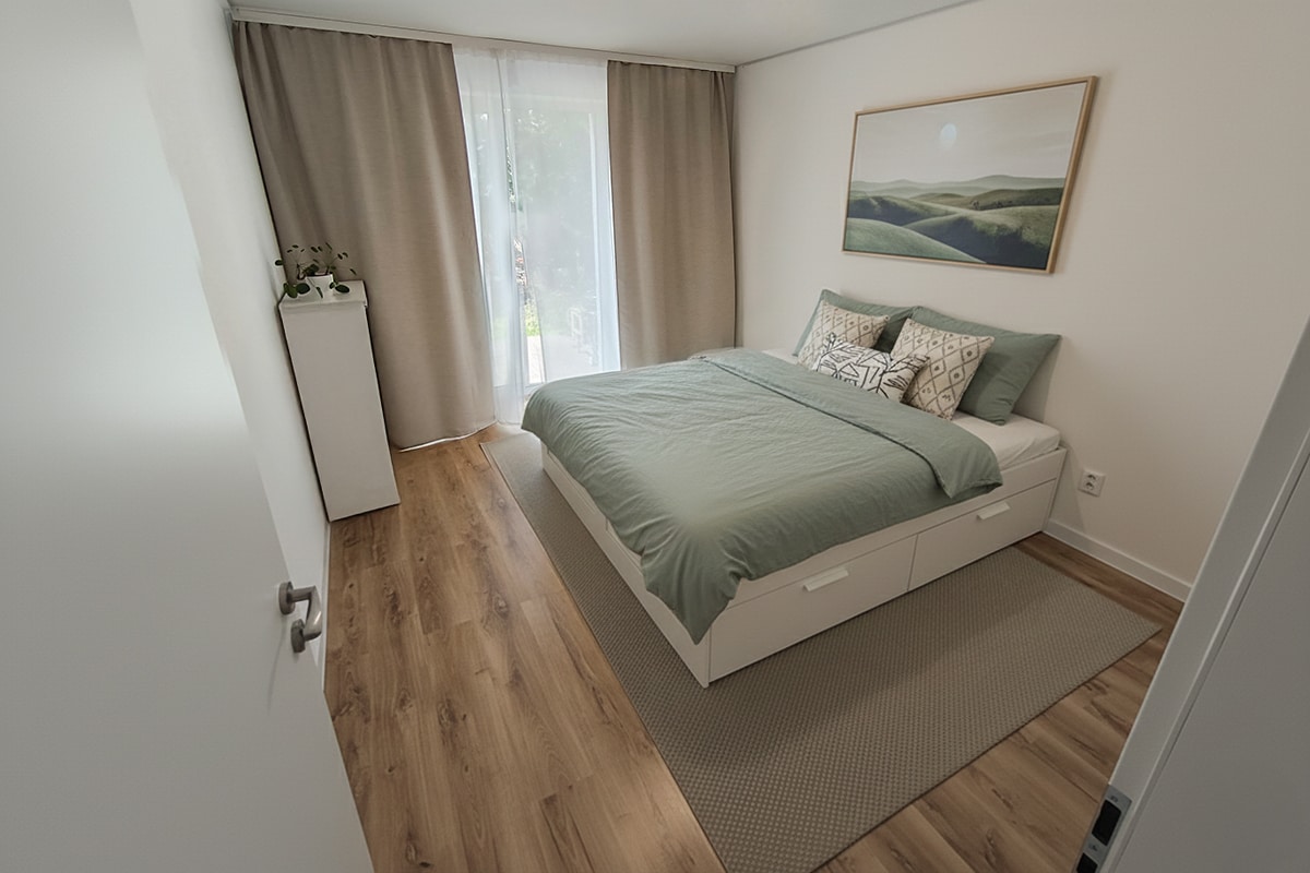 Beautiful 2 bedroom house (terrace) new construction in a quiet location. The house has its own parking in front of the house for three cars. The house has a beautiful private terrace of 10m2 and a private garden of 40m2. On the terrace there is a modern rattan garden seating. Very good access to the center of Bratislava 20 min by car and quick connection to the highway in about 5 min. To Vienna it is 1 hour by car. In the vicinity you will find groceries, restaurants, cafes, shops, a pharmacy.