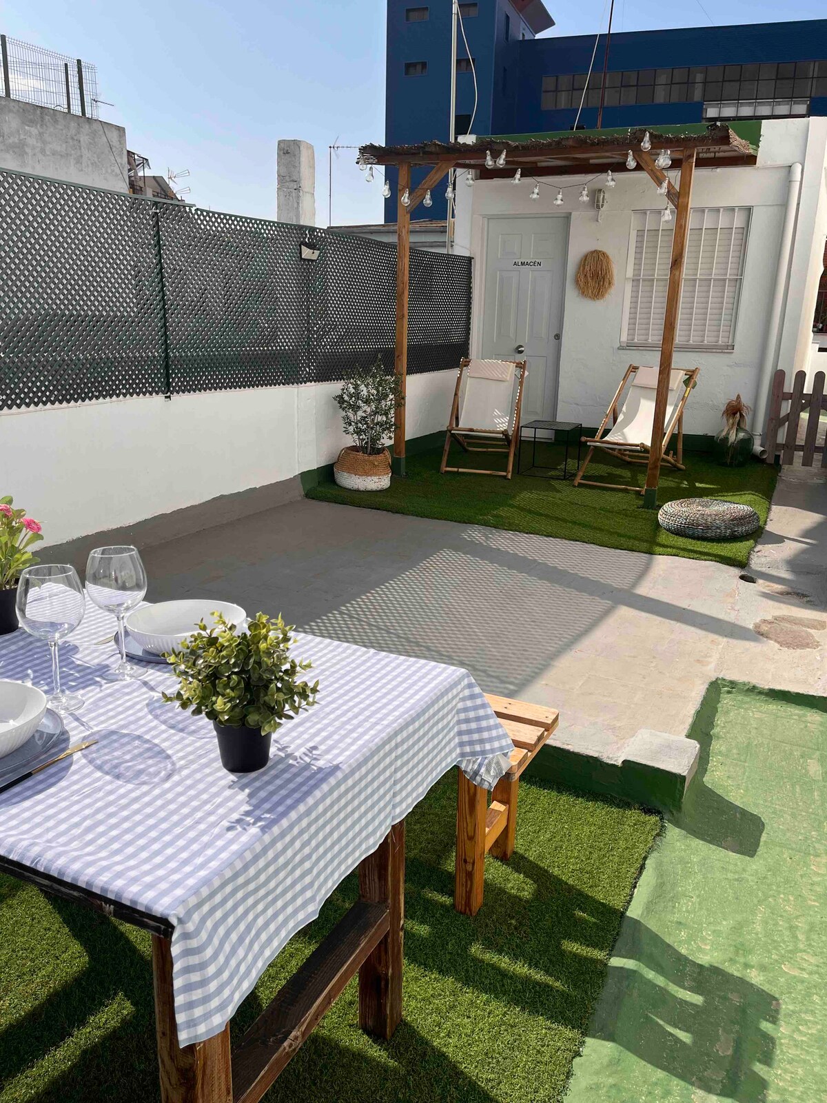 Ático la estrella es un elegante alojamiento, una creación donde la luz es la protagonista en Todo el espacio gracias a una cristalera que comunica el salón y la habitación principal con la terraza. La terraza es el espacio más bonito y lleno de vida , llena de plantas que crean un ambiente muy relajado. Una ducha exterior para refrescarse y una hamaca para tomar el Sol. Una decoración romántica, toda la ropa de cama , toallas y albornoz son 100% algodón, de Zara Home .
