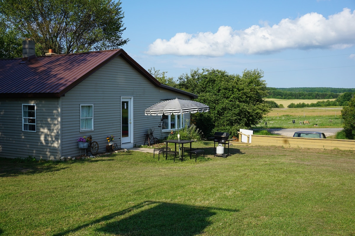 We have just added an outdoor sauna to this fabulous cabin in the woods behind our house. Although there is only 1 proper bedroom there is a sleeping loft with a queen size bed and window overlooking the hardwood forest. We also have a pull-out couch. Guests have complete privacy and everything provided for a comfortable stay This is a cabin with peaceful relaxation in mind....no loud parties or anything of that nature. Come and enjoy northern Michigan's beauty in all seasons.