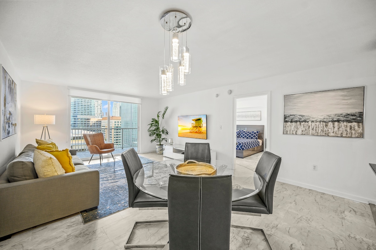 Stunning one bedroom condo located in the best area of Brickell just minutes away from Brickell City Centre and Mary Brickell Village with restaurants, bars, shops and entertainment. About this Space -Approx.818 sqft of natural light filled space with gorgeous bay and city views and a large private balcony with dining table and large patio couch -High-speed Wi-Fi -1 free assigned parking spot -Pool, hot tub, jacuzzi, steam room, game room, state of the art gym, and business center