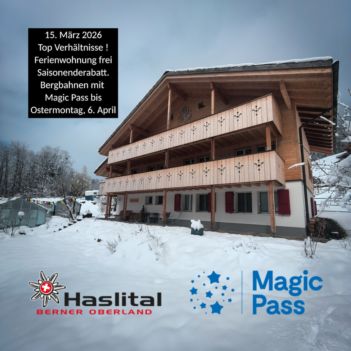 2-room apartment for quiet, mindful, self-reliant guests. For your very own time out. You can explore the wonderful Haslital, enjoy nature, do outdoor sports or just meditate – whatever you want. The house is called Chalet Bambi and is located at 1,075 meters above sea level in a sunny location on a natural property with a variety of flowers in the garden. In winter, snow and ice can be expected. Smoke and pet free - indoors and outdoors (entire property).
