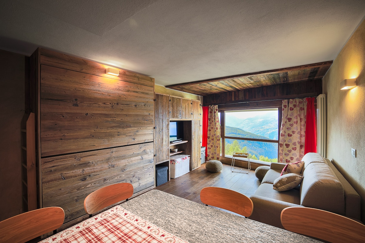 Attic apartment located in a quiet area in the center of the valley, ideal for those who want to spend a relaxing vacation surrounded by nature, in a mountain landscape, take walks and visit breathtaking places. It is also recommended for those who want to visit the Aosta Valley or visit the various ski areas. The accommodation can accommodate 6/7 people, but with the addition of an adjacent studio apartment, it can accommodate up to 8-9 guests. The price is per person per night. CIR 0046