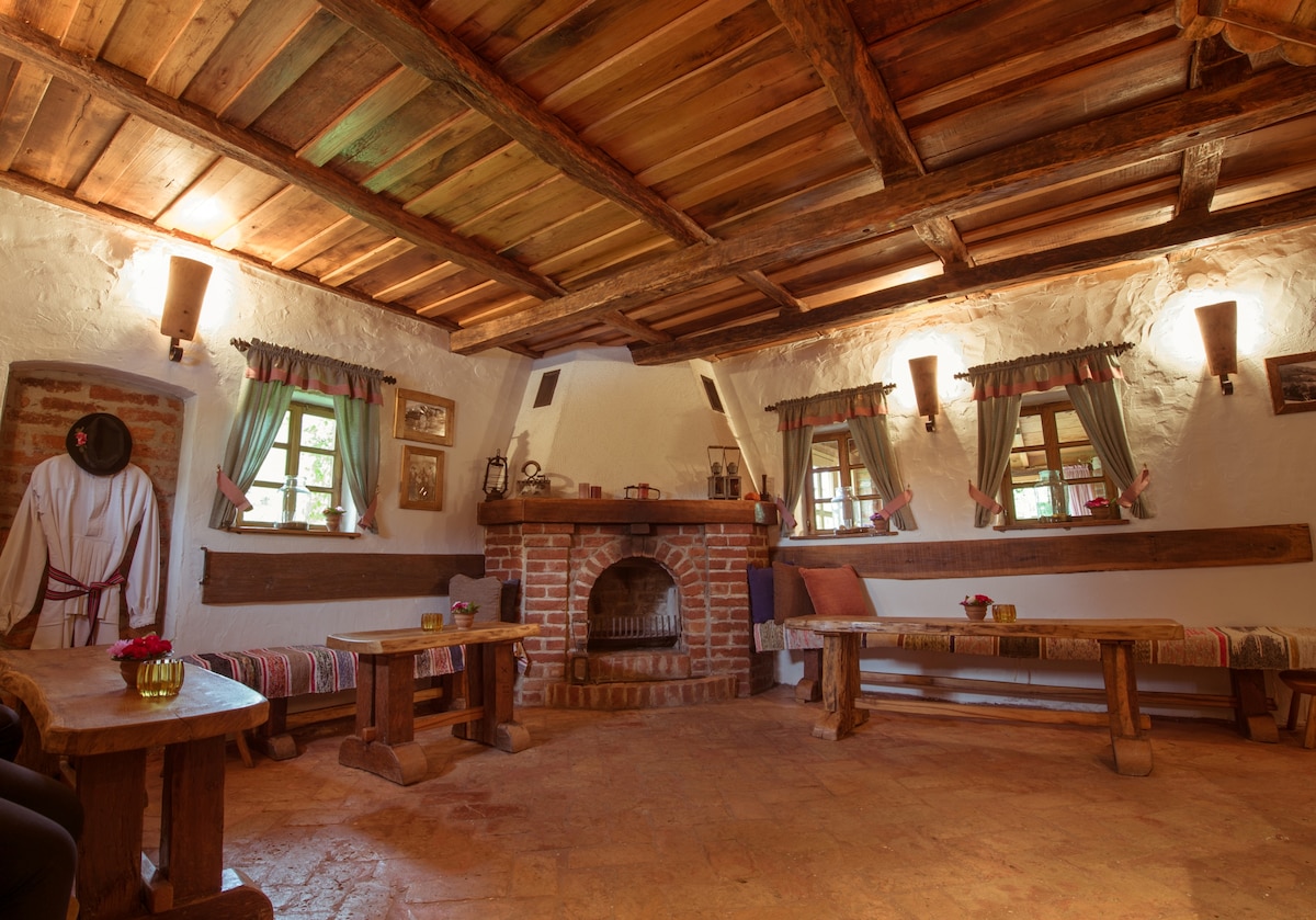The Kiljer Retreat is located in a peaceful Slavonian setting, ideal for relaxing in nature and spending time with family or friends. Guests have access to two rooms with queen-size beds and one traditionally furnished room with two single beds. The house features a large indoor grill area with a fireplace, a spacious courtyard, a terrace, and a balcony. Parking is provided, and pets are welcome. The space is perfect for relaxation, but also for celebrations and gatherings.