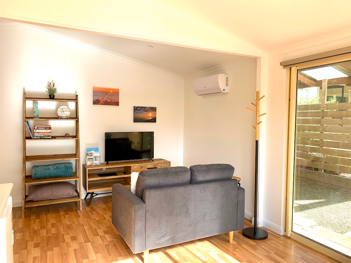 Our fully self-contained apartment is set in a peaceful neighbourhood, a short stroll down to the jetty, new boat ramp and famous long white beach. The apartment is on the ground floor of our newly built two storey home. You have private access with no stairs or steps, parking at the front door, a well-lit driveway and entrance, off-street parking for boats, free wifi and reverse cycle air conditioning. The private outdoor area and lounge overlooks our spacious garden with your own BBQ.