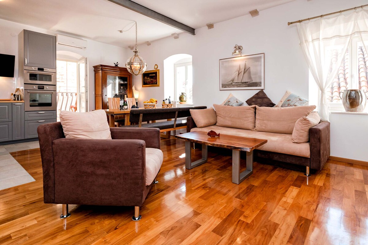 Charming historical house in the strict city center of Hvar town with a beautiful view over the port. This inviting house is managed by a conscientius host who takes great care to ensure the comfort and well being of guests. You can rest assured that any concerns or requests will be prompthy adressed making your stay as enjoyable as possible. While this property is not suitable for any parties, it provides a comfortable and harmonious atmosphere for those seeking a quieter lifestyle.