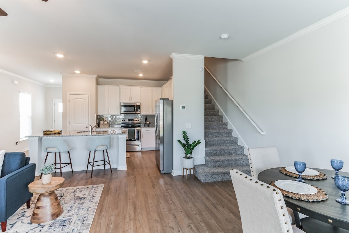 Amazing space for business, solo travelers, or couples! Minutes away from Gulfstream, the airport, Savannah, restaurants, shopping & more! Hyundai Metaplant in Ellabell- 20 minutes Why Little Gem? * Private home with comfy King Bed, black-out curtains, & Full Size Pull-Out Couch Bed * Fully stocked kitchen & coffee bar * Large desk for work * Central & quiet location * Walkable neighborhood * Relaxing outdoor hot tub * T.V. with apps to log into your Netflix, Hulu, etc * Free Parking