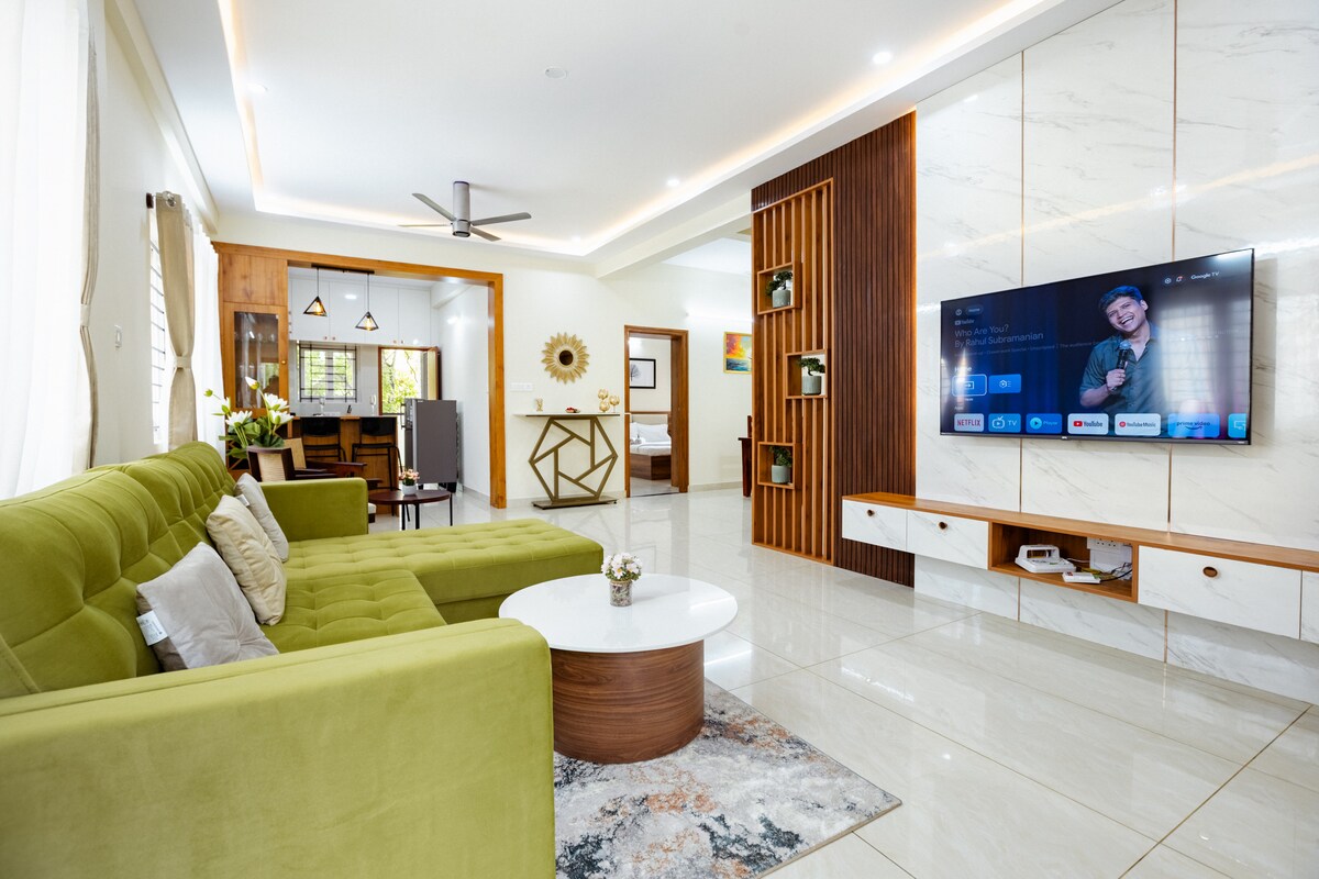 * Sanitized Certified* OLIVE Serviced Apartments - Award winning Homes - Long Stay Discount (7, 28 Days). SPECIAL OFFER - 15% AirBnB Service Fee & Cleaning Fee waived! Private 1 BHK Flat in heart of city Koramangala. Perfect for Single Guests & Couples - short drive from Indiranagar. Spacious Home with Designer Double Bed & attached Bathroom, Living Room with Couch, Kitchen with Cooktop, Fridge, Microwave, cookware etc - Cleaning, WiFi Internet, Tata Sky TV, Washing Machine, Lift, parking.