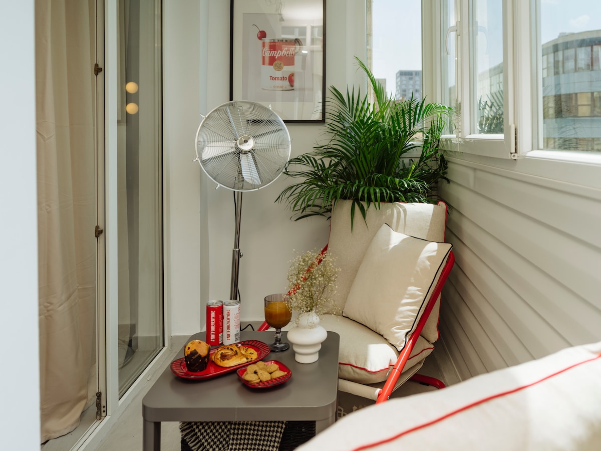 Experience the charm of our urban loft in the heart of the city! Enjoy the peace in our elegant bedroom, with wide windows that fill the room with sunlight, and settle into a luxurious marble bathroom. Located in a lovely neighborhood, this inviting space offers a fully equipped kitchen, a relaxing living area, and a small balcony. Perfect for the modern traveler who values style and comfort. Book your stay - delight in the simple luxuries and make this loft your personal hideaway.
