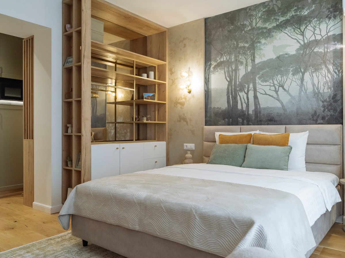 Experience the charm of our urban loft in the heart of the city! Enjoy the peace in our elegant bedroom, with wide windows that fill the room with sunlight, and settle into a luxurious marble bathroom. Located in a lovely neighborhood, this inviting space offers a fully equipped kitchen, a relaxing living area, and a small balcony. Perfect for the modern traveler who values style and comfort. Book your stay - delight in the simple luxuries and make this loft your personal hideaway.