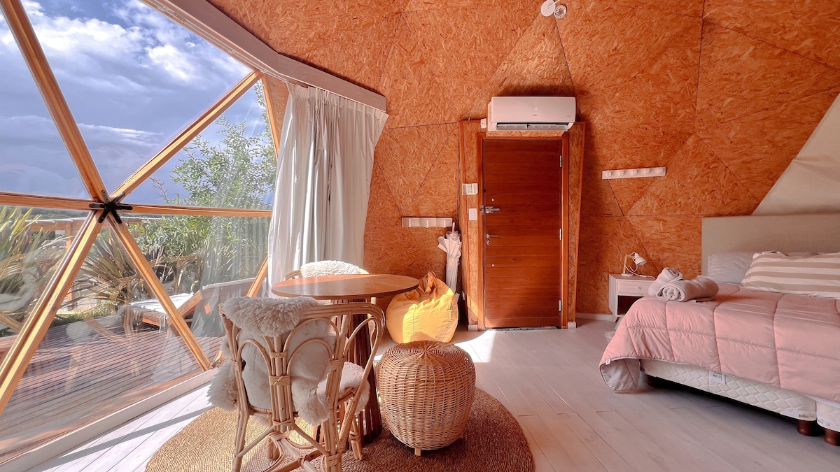 Domo Gaia - Acceso a piscinas, balneario y estacionamiento incluidos. Es un refugio premium con baño en suite y mirador de estrellas frente al mar. Calma entre médanos y vegetación nativa. Ideal para reconectar con la naturaleza y descansar en un entorno único, cálido y silencioso. Su diseño geodésico y artesanal combina confort, madera y paisaje costero. A pasos de la playa, perfecto para parejas o quienes buscan paz.