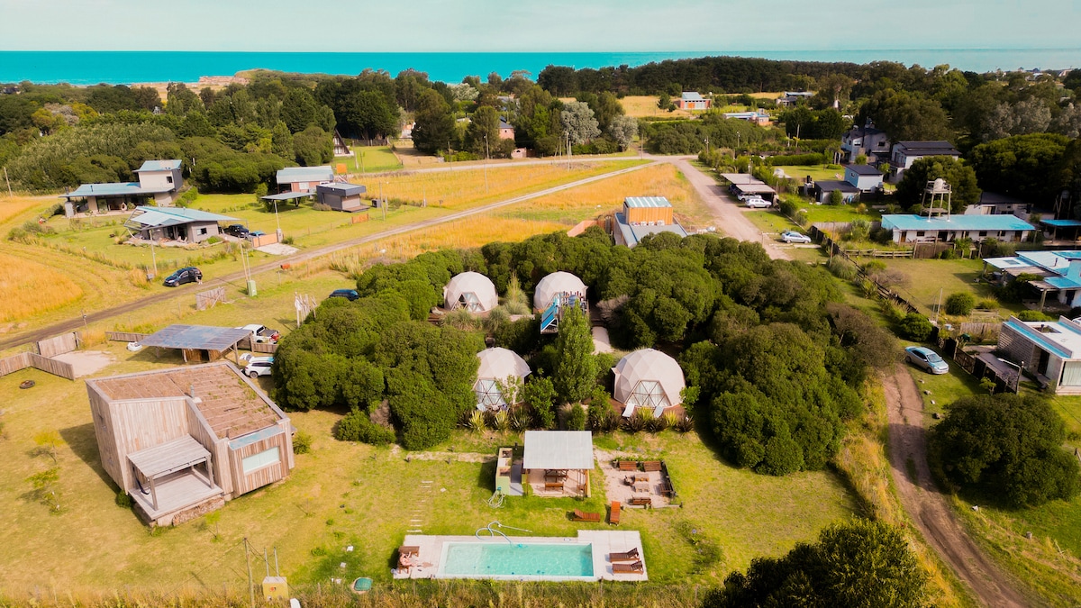 Aikén Chapa features 4 domes on a 2,200 m² property surrounded by nature and stunning sunsets. Each 35 m² loft-style dome is perfect for 2 guests (plus a child in a mezzanine), with a kitchen, private deck, and shared pool, fire pit, and BBQ. Just steps from Cruz del Sur and Redondo beaches, it’s the perfect spot to unwind and enjoy Chapadmalal’s calm vibe all year round.
