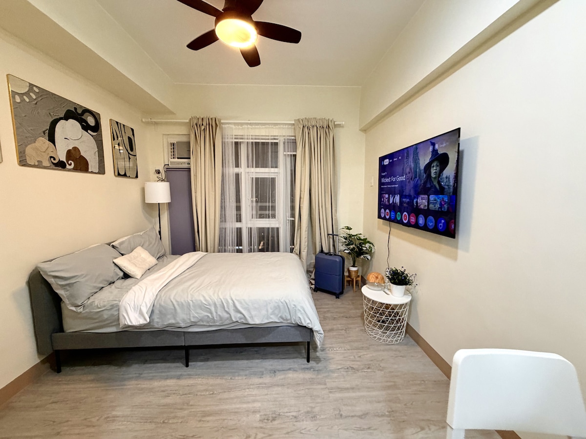 Kick back and relax in this calm, stylish space bauhaus-inspired studio unit with a city and mountain view that captures dreamy mornings and bed weather vibes. We pride ourselves in having a clean studio condo at an affordable price! Discounts for longer stay. ๐ ฟ๏ธPARKING RATES: (Please inform ahead of time) ๐ Car -โฑ250 to โฑ300 ๐ต Motor - โฑ150 to โฑ200 ๐ฆSWIMMING POOL DETAILS: Proper swimwear is required ๐ฉฑ Swimming Time: 8AM to 10PM โฑ150/pax regular days โฑ300/pax holidays