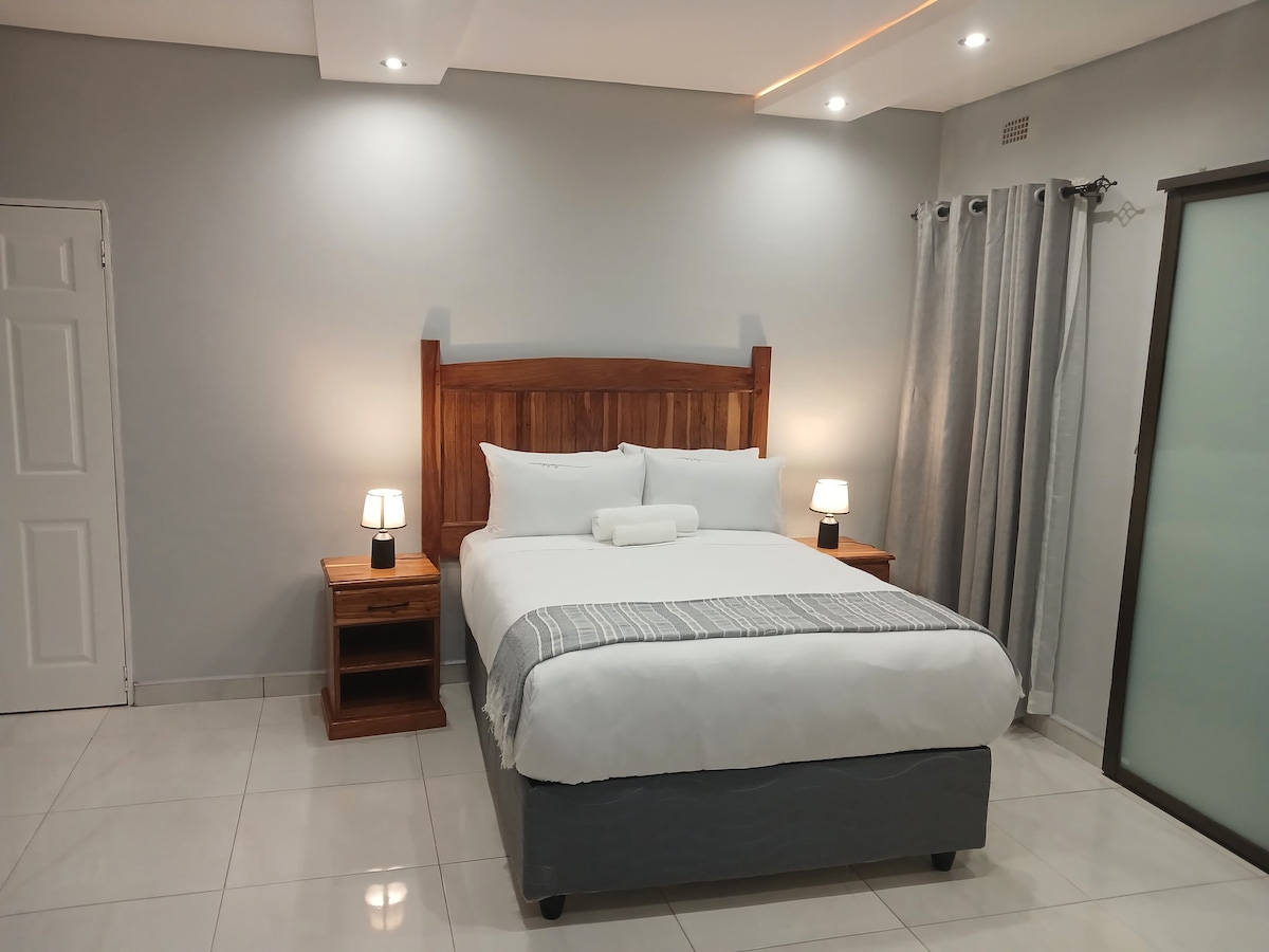 Bulawayo's best spot is super close to town and has a lush garden and secure living area. You’ll love my place because of the outdoors space. Highly recommended for couples, solo adventurers, business travelers, and families (with kids). Equippped with solar lights and geyser, in the event of power cuts as well as a gas stove.