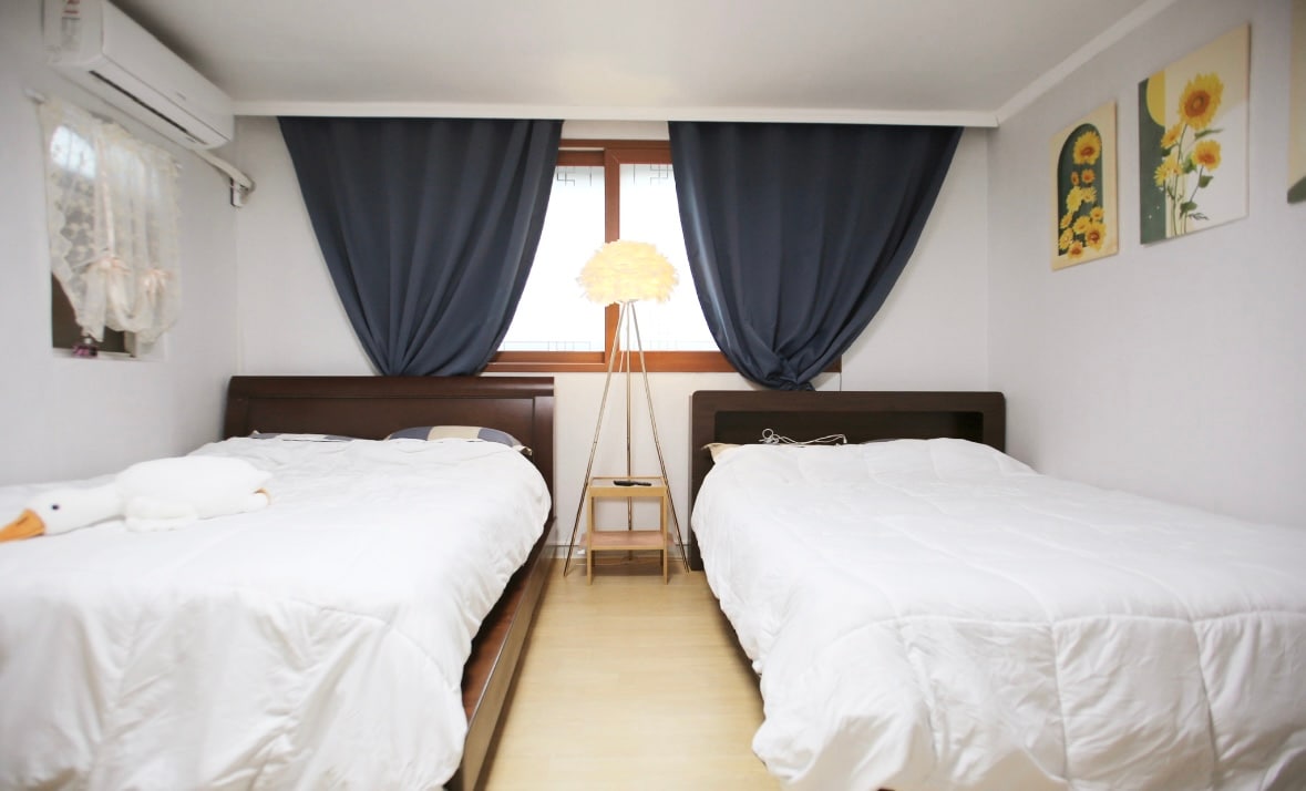 조용한 주택가에서 휴식을 즐겨보세요 ٩(✿╹◡╹✿)۶ 최대 6인, 친구 또는 가족과 시간을 보내기에 적합한 숙소입니다. 작은 소품 하나하나 신경써서 준비했어요 :) 이곳에서 머무시는 동안 행복한 시간이 되시길 바라요. 숙소 제공사항 (๑•̀ㅂ•́)و✧ TV 넷플릭스 (애플TV사용) 퀸사이즈 침대 2개, 퀸사이즈 토퍼 (요와이불) 블루투스 스피커 WIFI 6인용 식탁 미드센추리 소파 2구 인덕션 각종 테이블 웨어 및 컵 밥솥 전자레인지 조리도구 세탁기 건조기 침대의 경우 저상형으로 제공, 프레임은 제공되지 않습니다. 4인 이하 예약의 경우 메인 침실에 침구류 제공됩니다. (+작은방 5인~) 장기숙박의 경우 숙소 내 식물에게 물을 챙겨주세요 세탁기 및 건조기 사용은 미리 호스트에게 알려주세요 *계절에 따라 제공되는 침구류는 사진과 다를 수 있습니다. *계절에 따라 숙소에 벌레가 들어올 수 있으니 문과 창문을 꼭 닫아주세요!