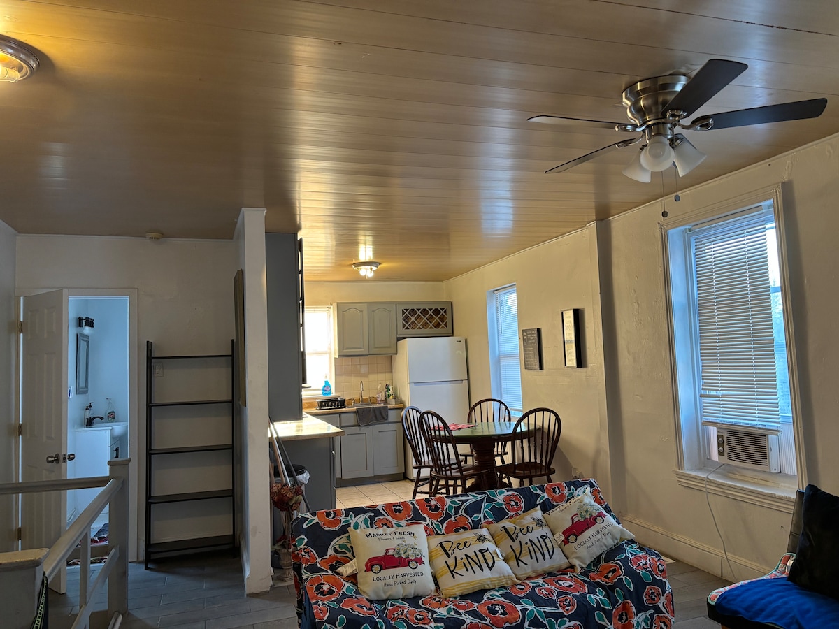 Welcome! To our newly renovated historic loft apartment in the charming heart of Mount Holly—perfect for both business and leisure travelers. Imagine being 22 miles from Six Flags, 30 miles from Philadelphia, 60 miles from Atlantic City, and 75 miles from New York City. Our loft features a spacious master suite with a queen bed, kitchenette, living room with a convertible loveseat, coffee & wine bar, convenient parking, and fast Wi-Fi. We can’t wait to welcome you to this exceptional home!