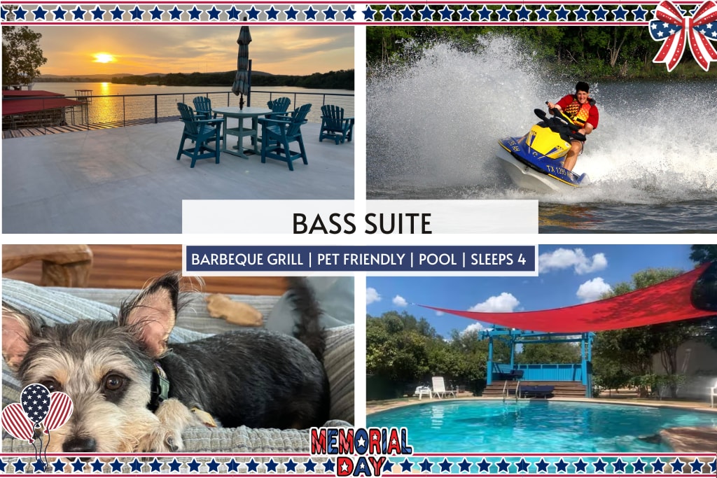 Welcome to Lakefront Suite 12 at Valentine Lakeside, part of the charming Lakefront Suites Collection — a two-story quadplex overlooking beautiful Lake LBJ. The Upper-Level Suites are conveniently located at ground level with easy access from the parking area, while the Lower-Level Suites, like Suite 12, sit just below, accessible by a short walkway that gently slopes toward the water’s edge.