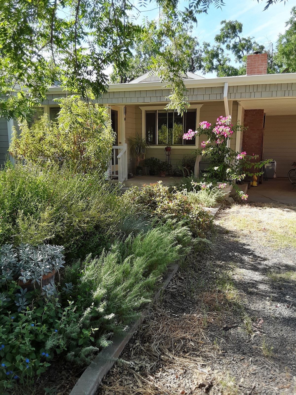 Enjoy a comfortable and stylish stay at this sparkling clean, centrally-located, pet & family-friendly guesthouse with private yard. Experience the convenience of a hotel, the hospitality of a bed and breakfast, and the amenities of a vacation rental! Fully stocked kitchen and bath. The freeway entrance and Highway 32 are just around the corner. Downtown Chico, Chico State, Bidwell Park, south Chico shopping, and the Sierra Nevada Brewery are all within one mile or less.