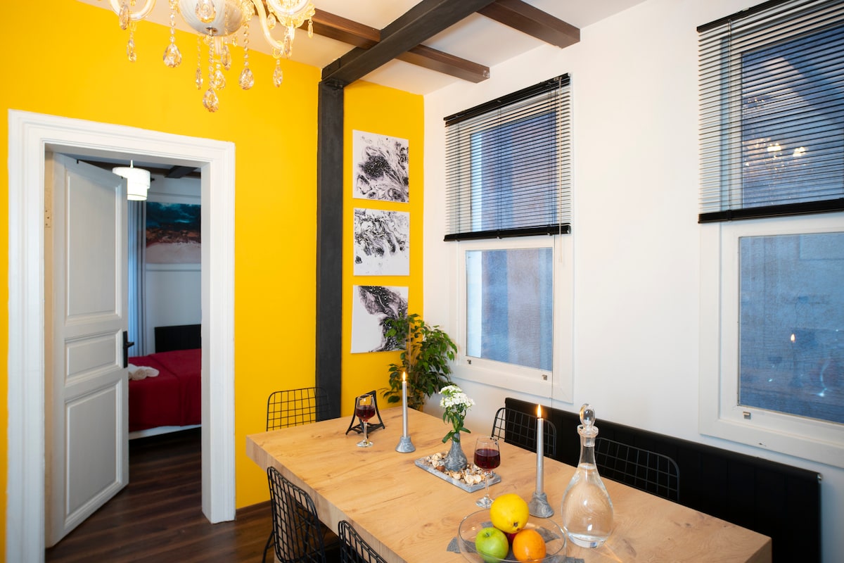 Our newly renovated 140+ years old apartment is located 200 meters away from the Galata Tower. There are two bedrooms, 1 living room, 1 fully equipped kitchen and a bathroom. Each room has airconditioner. The flat is on the 3rd floor and can accommodate up to 5 people. The building and the flat itself maintain it's magical 19th century spirit. We wanted to offer our guests a historical atmosphere in a modern design in top location.