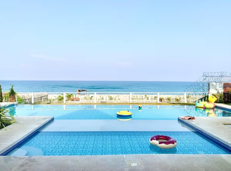 We’re located at The Sandbar Beach in Brgy. Felmida Diaz, Cabangan—our property offers direct access to this beautiful beach. The villa suite comes equipped with a 70-inch Smart TV and high-speed WiFi. Room service is also available to make your stay even more relaxing. Think gazing at the beach, swimming in an infinity pool, or witnessing jaw-dropping sunrise or awesome sunsets.. perfect for a serene getaway or laid-back retreat for groups of friends or families.