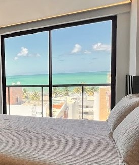 You'll be comfortable in this spacious and unique space. The flat easily accommodates up to 3 people! New bed, everything new! Lie in bed and watch the waves and hear the sound of the sea! The experience is spectacular! The nature and beautiful sea of Praia do Bessa are just a few meters from your bed, dining table and work! You can eat, work, and rest, all while looking at the sea 24 hours a day and without any car traffic because the flat's street is a dead end and is used for residents and guests!