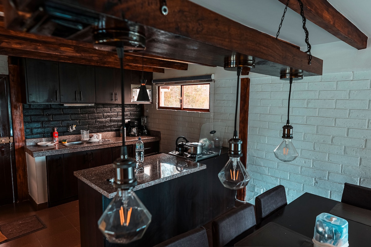 - Thermally insulated house - 1500 m2 of privacy - Includes a suspended slow-burning indoor fireplace - Security windows (open) - A full, spacious kitchen with 4 burners - Breakfast bar overlooking the snow-capped El Altar and a bedroom overlooking Chimborazo - Bathroom with shower (hot water) - Closet and luggage rack - Outdoor fire pit area - Great for couples - Yes, it has Wi-Fi Enjoy an incredible landscape, starry sky, and romance on the slopes of Chimborazo in a safe area