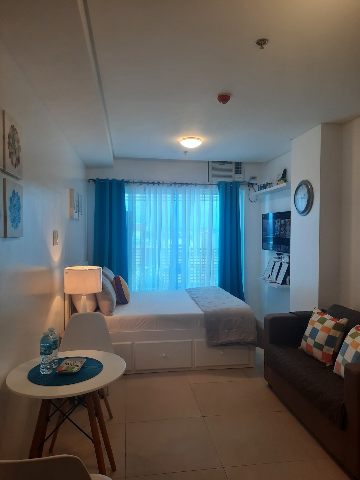 ✪ New & lovely studio condo beside SM Uptown by TheBaqs ✪ ❅ New studio condo beside SM City Uptown ❅ Stunningly beautiful, modern & cozy ❅ Accommodates up to 4 guests (extra guest fees auto-calculated when booking) ❅ Sleeps in 1 Queen Bed + 1 Double Sofa Bed ❅ Modern Kitchen & Bathroom with Hot Shower ❅ 50 inch SMART TV with Netflix + High Speed Fiber Internet ❅ Overlooking city and bay view ❅ FREE pool access (maintenance cleaning may affect availability), gym access and shared parking
