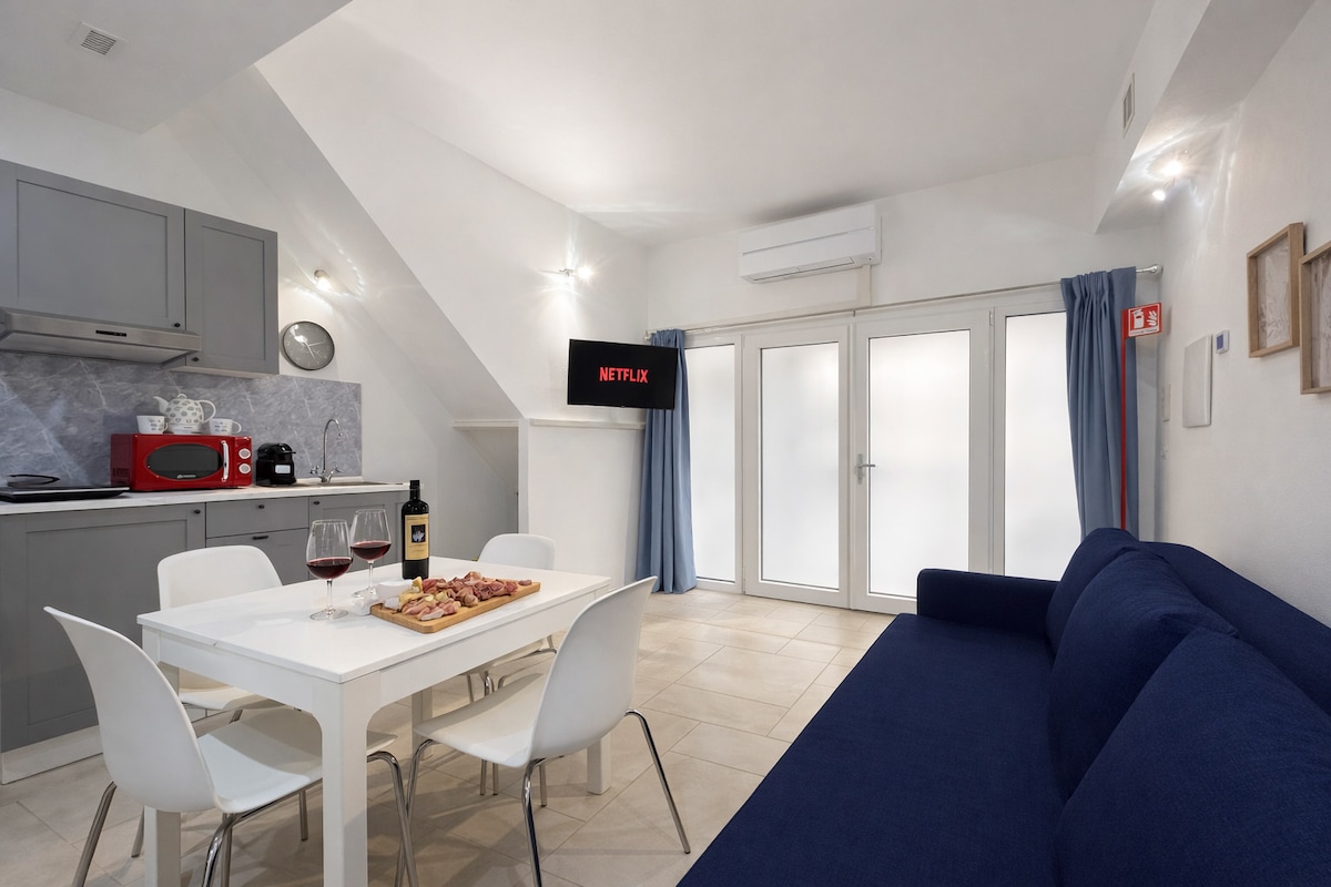 In the oldest heart of Villanova, a quiet and picturesque 13th-century district, a simple door hides a small gem ready to surprise you. A bright living room illuminated by large French windows welcomes you, along with an intimate double bedroom and a spacious rooftop terrace overlooking the walls of Castello, the 13th-century Pisan tower of San Pancrazio, and the dome of the Cathedral.