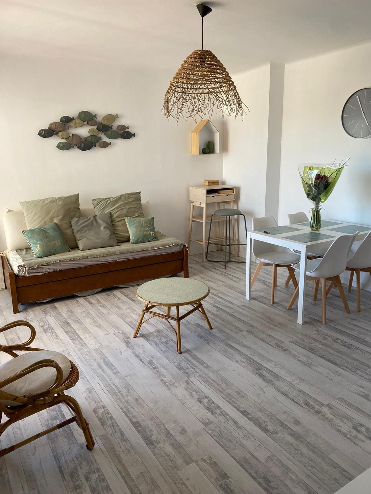 GOOD PRICE €55/N IN FEBRUARY, MARCH. Enjoy a beautiful spacious apartment of 70M2 fully renovated with quality materials The place is ideal, everything is done on foot, it is in the middle of the city overlooking the shopping street. Market 200 m away, 500 m WALK FROM THE BEACH AND PORT Apartment composed of a large living room leading onto a terrace of 14m2 an equipped open kitchen, 2 bedrooms with TV and 140X190 beds and the other 140x200 1 bathroom 1 separate WC