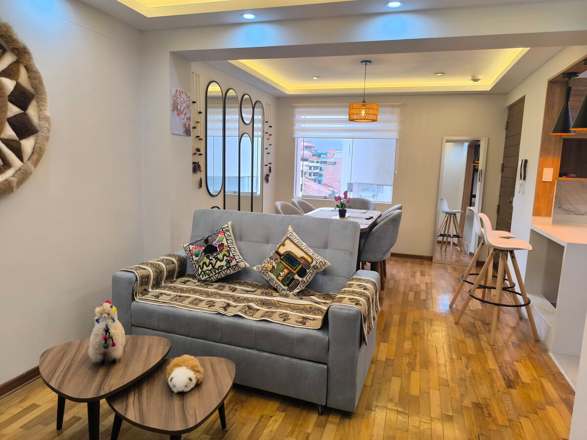 ✨ Your perfect base for exploring Cusco and Machu Picchu ✨ Welcome! This modern apartment on the 9th floor offers a spectacular view of the Andean mountains, a comfortable atmosphere and a strategic location, perfect for tourists who want to get to know the best of Cusco. Located in the quiet and safe area of Wanchaq, you will be only a 15-minute drive from the historic center, with easy access to taxis, public transport and tours to Machu Picchu, the Sacred Valley, the 7-Colored Mountain and more.