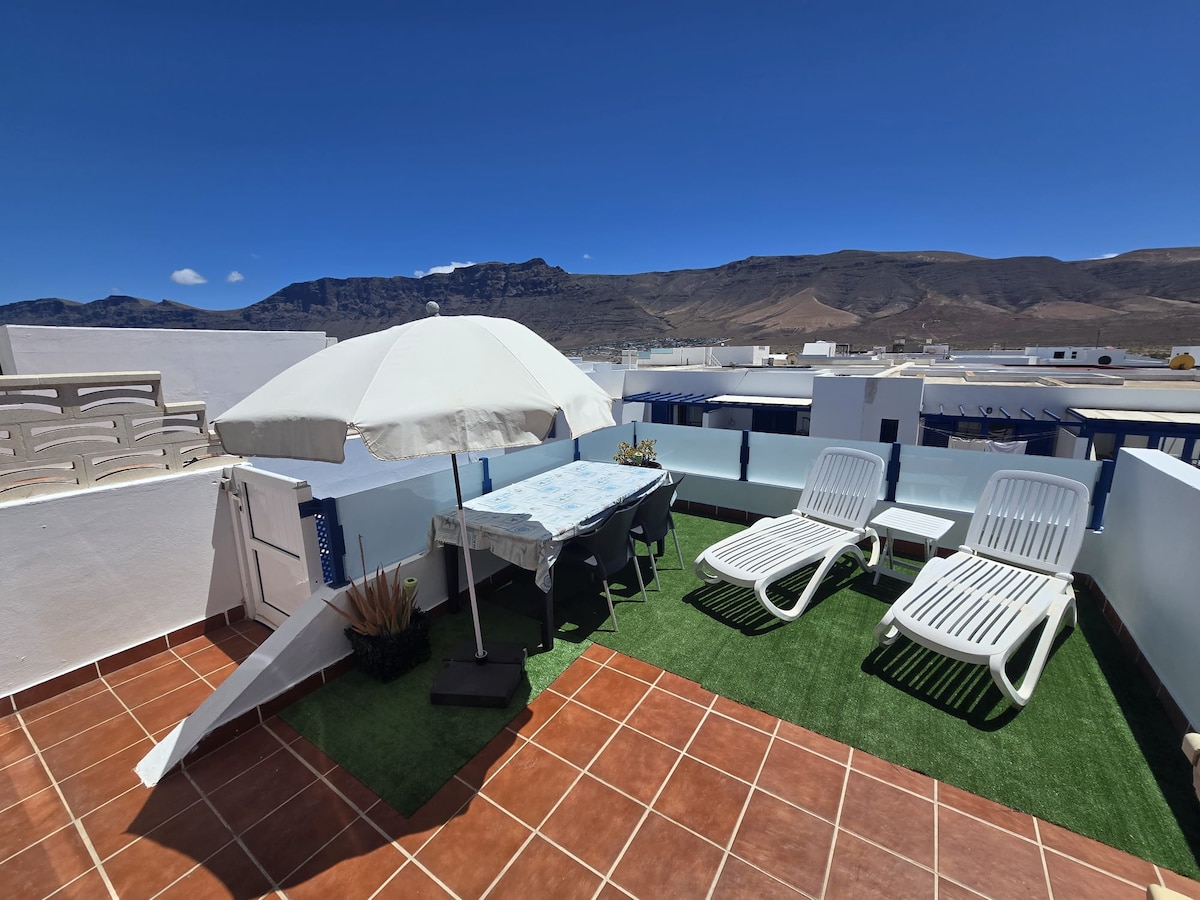 Apartment in Caleta de Famara, perfect for a relaxing beach getaway! Located in a quiet area close to the famous Famara beach. The highlight is the sea views from both inside the apartment and from the balcony. It also has a 70-square-metre terrace on the top floor to share with the neighbours, ideal for enjoying the sun, dining al fresco, doing yoga or simply relaxing with panoramic sea views.