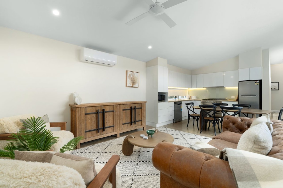 Fully self contained NEW MODERN villa with own parking at entry and seperate driveway. Comfortable living room, kitchenette, bathroom, fully equipped laundry, outdoor BBQ area, air conditioning, FREE WI-FI. KING bed with luxury white cotton linen and towels are provided. A 5 minute walk to the main street (Owen St) Huskisson, which is home to Husky Pictures, Boutique Shops, Cafes, Restaurants, Clubs & The Famous Husky Pub.