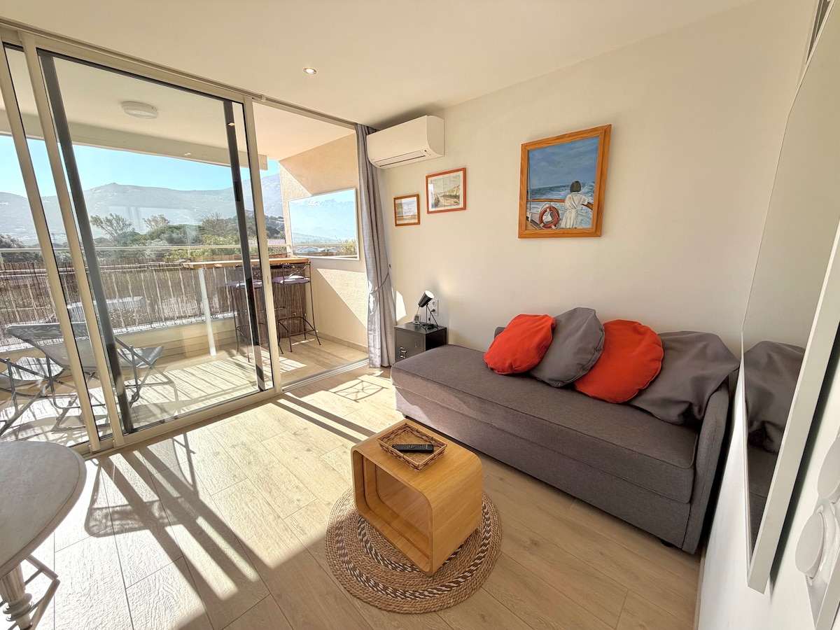 Two-room apartment with sea & mountain views, terrace, parking – Calvi