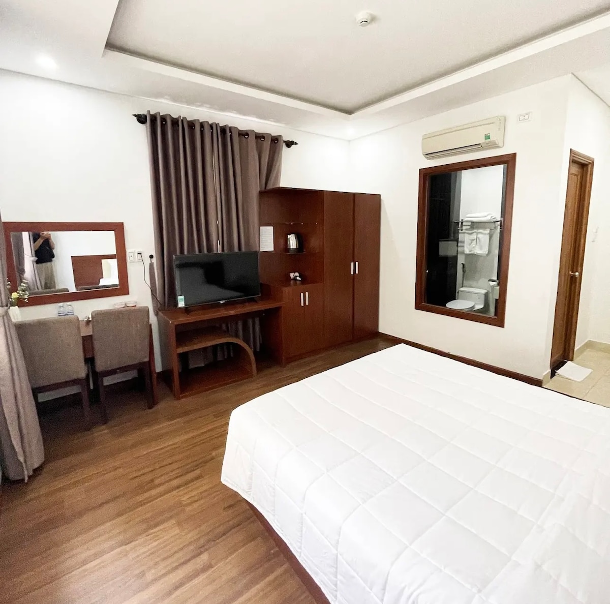 ✨ A getaway inspired by Da Nang’s blue ocean ✨ Designed with the shimmering hues of the sea, our space offers relaxation and a warm, welcoming vibe. Amenities you’ll love: ☕ Complimentary tea, coffee, and bottled water in-room 🛏️ Spacious room with smart TV, air conditioning, and wardrobe 🧼 Private bathroom with free toiletries ✨ Daily housekeeping for your comfort 📍 Perfect location: just a 5-minute walk to My Khe Beach – one of the most beautiful beaches in the world.