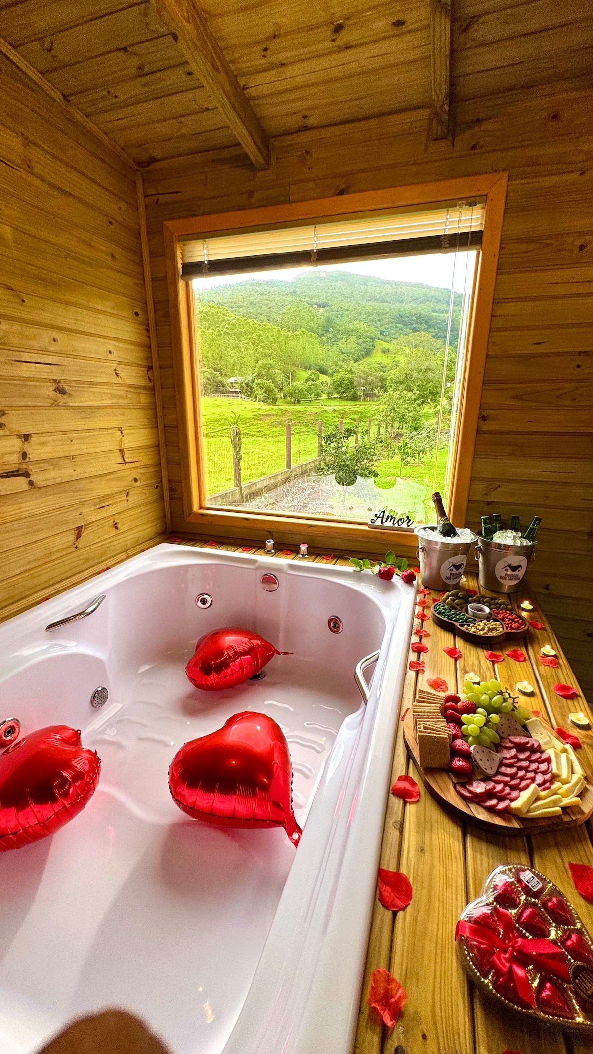 Our unit has two whirlpool tubs, a gazebo, a full compact kitchen, SmartTV with all open channels, a queen-size bed, the entire water heating part of the cabin with gas heating, air-conditioning with hot and cold air and an ecological fireplace, a balcony overlooking the river and our outdoor fire pit. In a pleasant location in the midst of nature. The entire cabin was planned with affection and comfort for our guests, in addition to the wonderful view of the Canyons and the Serra.