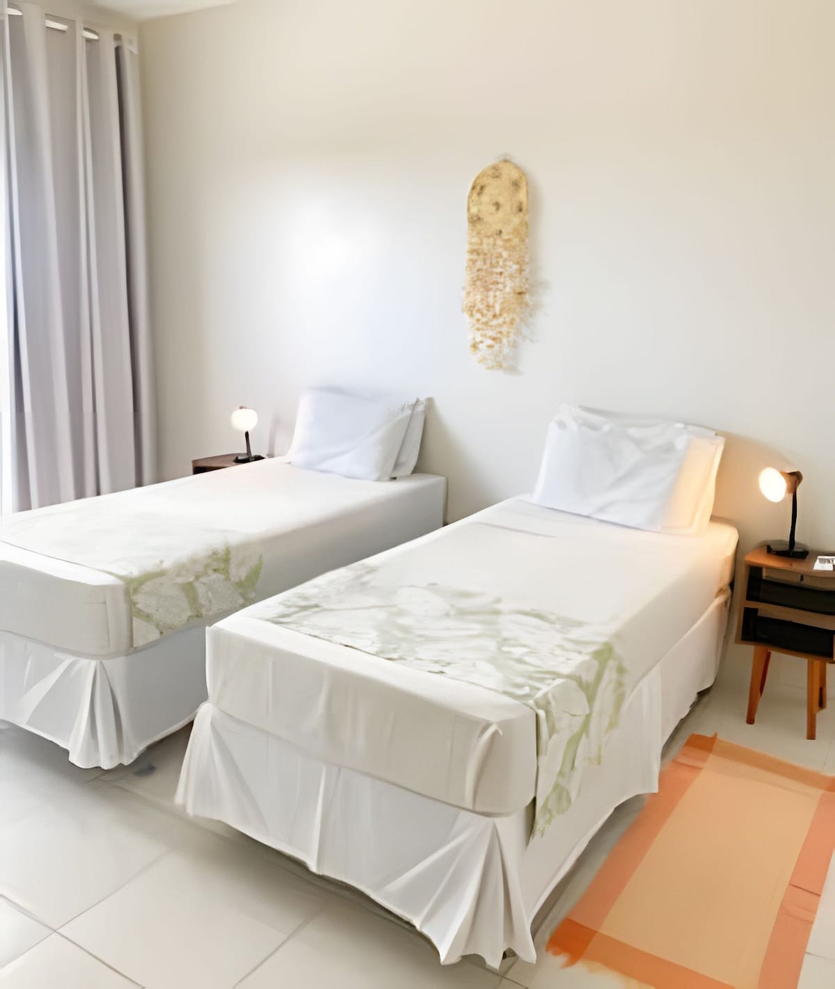 01 bedroom with balcony, with 03 single beds, air-conditioning, and with private bathroom with hot shower, decoration aligned with the accommodation proposal. 300m from Praia das Barreiras and 3km from Camocim city center. Garage available for 02 cars. Advice for tours of the region and the best places to know and eat well!