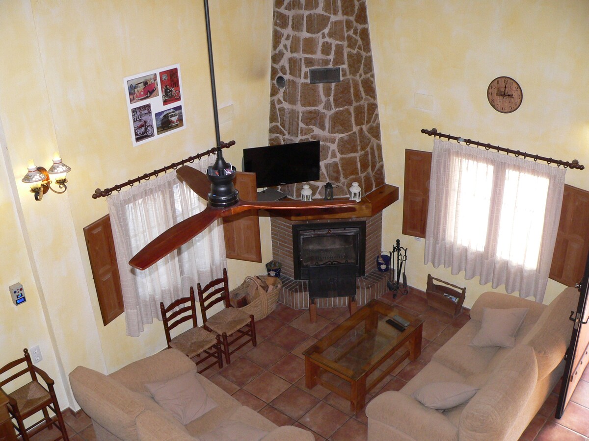 Registered in the Valencian Community Tourism Registry ARV-576. Impressive rustic construction with a wooden roof and stone walls, it has the property of relaxing you shortly after being in it, it is very comfortable. The house is sustainable, powered by solar and wind energy. The area is very quiet and lonely, it is in the middle of the mountain. No neighbors nearby to bother you.