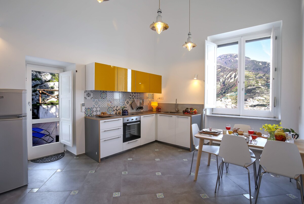 Casa Maior is a refined apartment recently restored and integrated with modern architectural complements. The flat is located in a dream Castle overhanging the sea on the Cape between Maiori and Minori. With the equipped terrace overlooking Maiori and the sea It’s perfect for a relaxing holiday close to the amalfitan villages. A double room, the sofà-bed in the living and a double bed in the open adjacent area interconnected with the living make it perfect for your stay up to 6 people