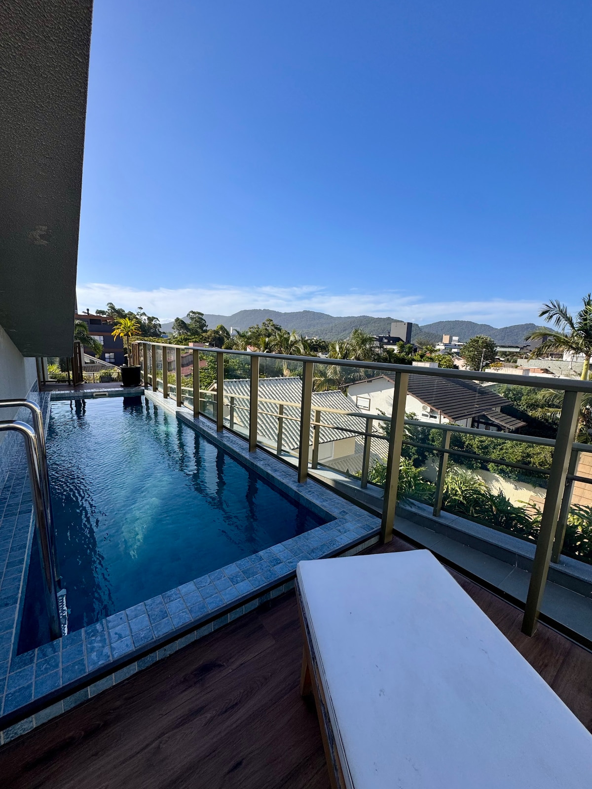 Luxury penthouse with total privacy, ocean view, jacuzzi, barbecue and large outdoor terrace in front of Campeche beach, one of the most beautiful beaches in Florianópolis! Spending your vacation at the Thai Beach Home Spa condo is like being at a 5 star resort! With a heated indoor pool, outdoor infinity pool, indoor and outdoor jacuzzis, gym, playground, an incredible common area! Central location near restaurants, bakeries, supermarkets and shops.