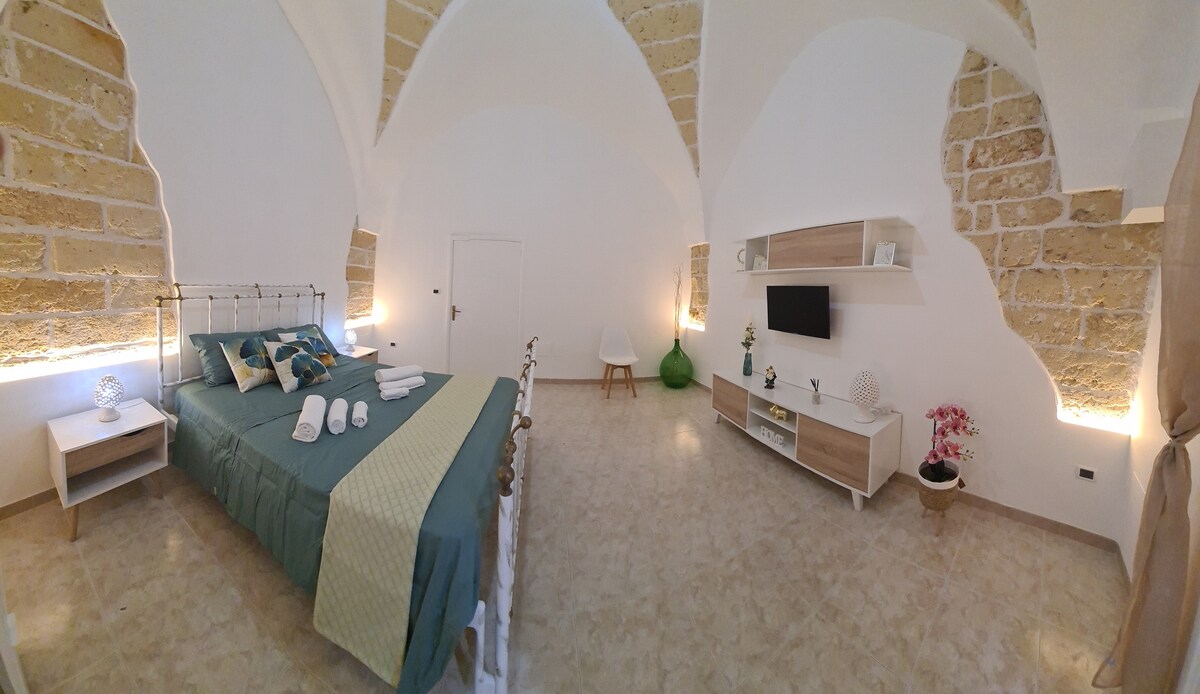 The residence is on the ground floor of a historic 17th-century building in the heart of Lecce, a short walk from the beautiful church of San Matteo and 5 minutes from Piazza S. Oronzo. The renovation has enhanced the building and all the history it contains and at the same time has made the home functional and equipped with every comfort. It has an extra service: a two-seater sauna with chaise longue and herbal tea corner (additional cost of €40/day). Art, mini SPA, antique and modern for an unforgettable trip!
