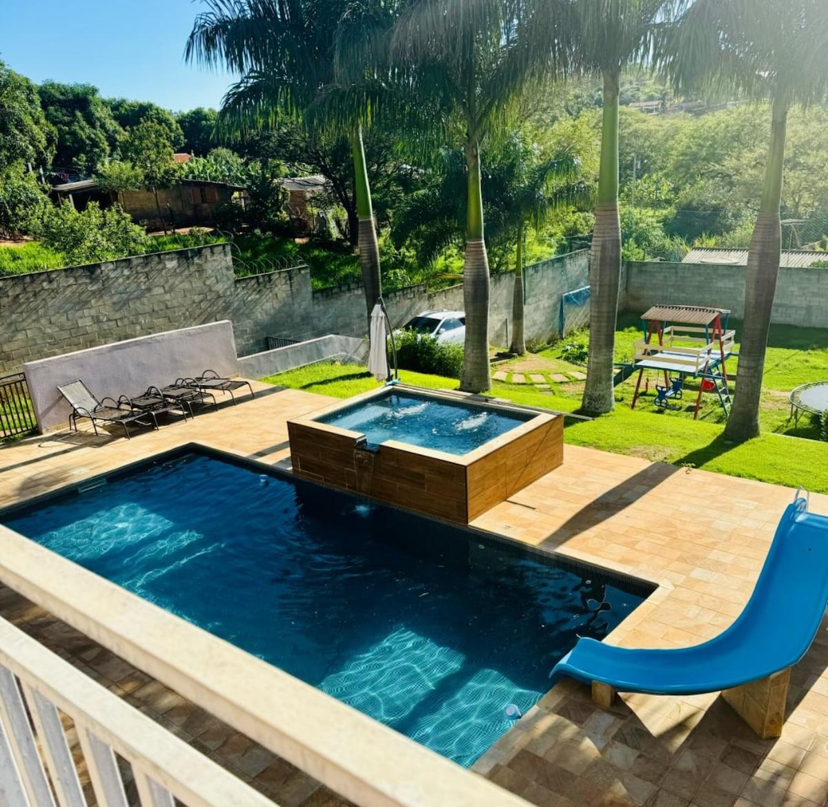 Wonderful space in Pedreira at the foot of the Serra with a swimming pool and outdoor kitchen overlooking the Jaguari reservoir with an incredible sunset and lush forest. We have a leisure space with free and covered areas, a swimming pool, a barbecue area and a wood-burning stove. Come and relax, and bring your pet to also experience this unique and tranquil place.